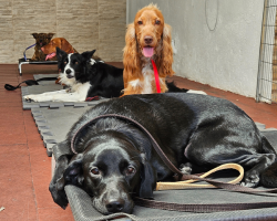 A arte de fazer o cachorro relaxar no local indicado, apesar de distrações no ambiente.